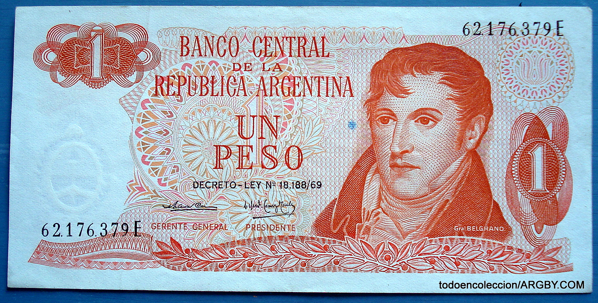 ARGENTINA BILLETE 1 PESOS LEY 18188 E379 1970