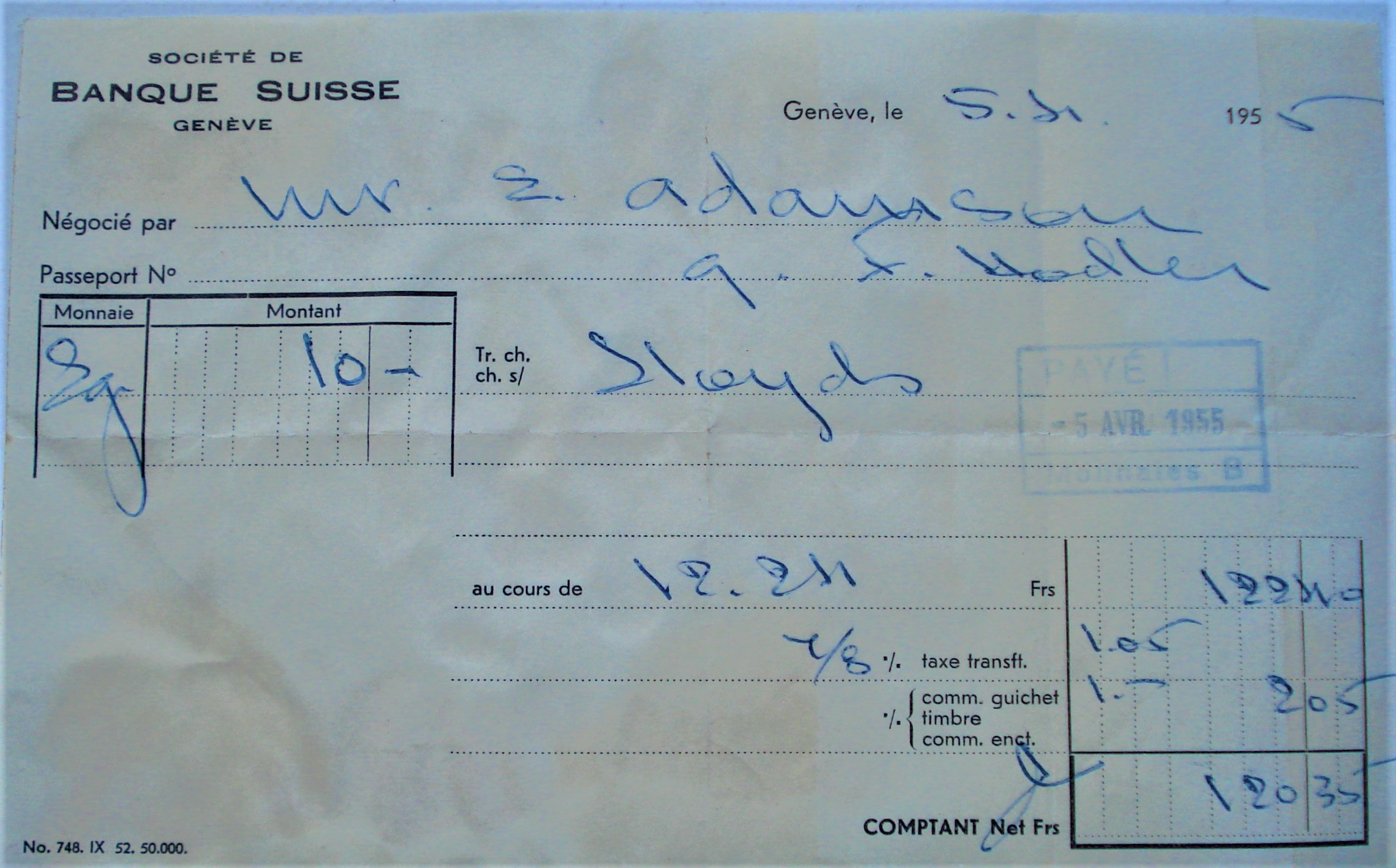 BANQUE SUISSE 1955 COMPROBANTE DE TRANSACCIÓN