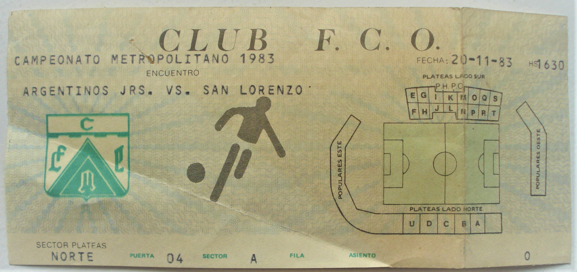 ENTRADA FERRO CARRIL OESTE 1983 ARGENTINO JRS. VS. SAN LORENZO CAMPTO. METROPOLITANO