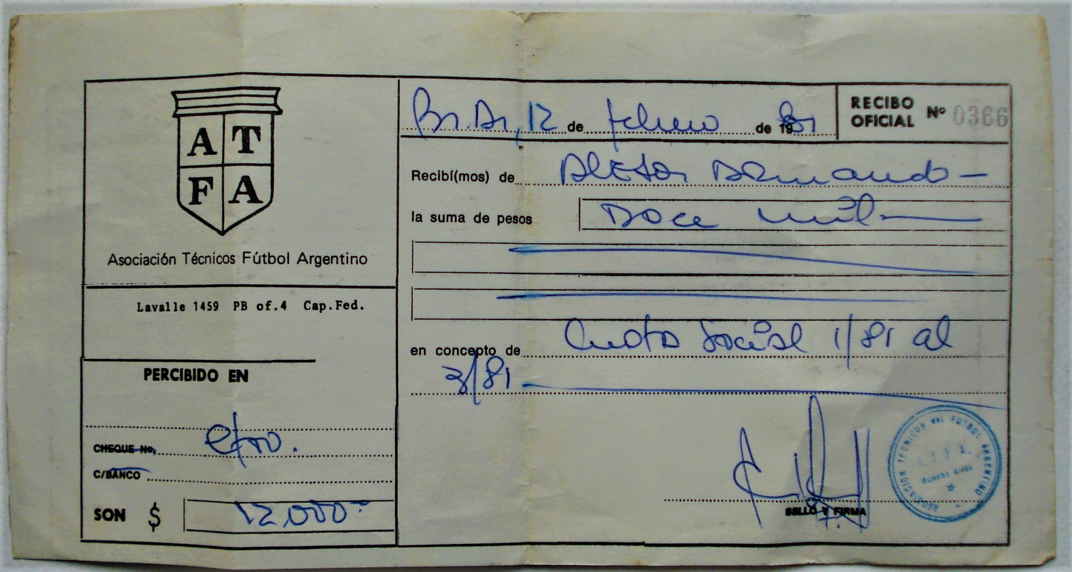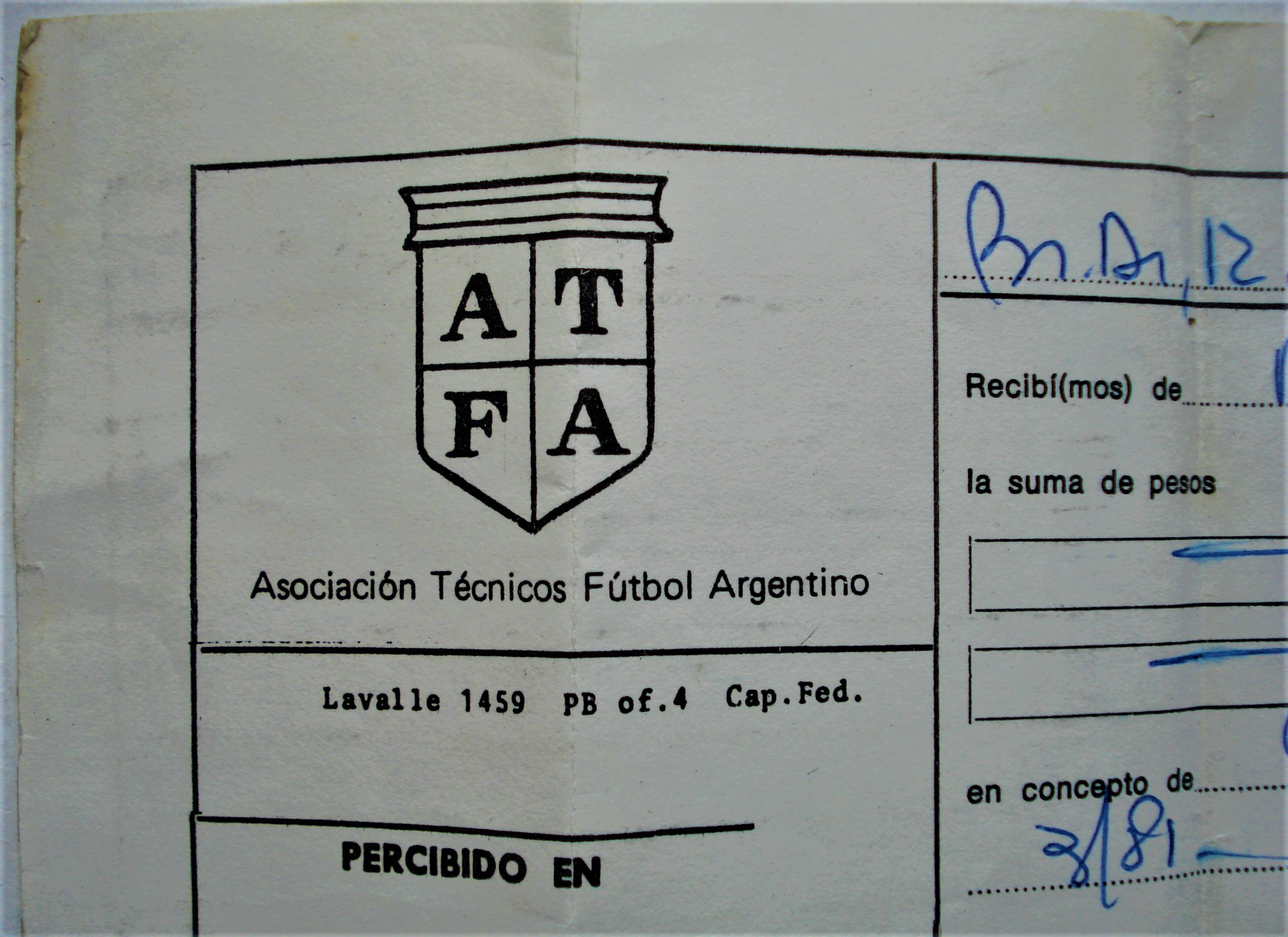 RECIBO OFICIAL 1981 ASOCIACIÓN TÉCNICOS DE FÚTBOL ARGENTINO